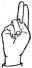 На ћирилици написано КРИСТИЈАН ГУЊЕВИЋ састоји се из 16 слова [?]. Исписано ћириличном једноручном азбуком за глувонеме: